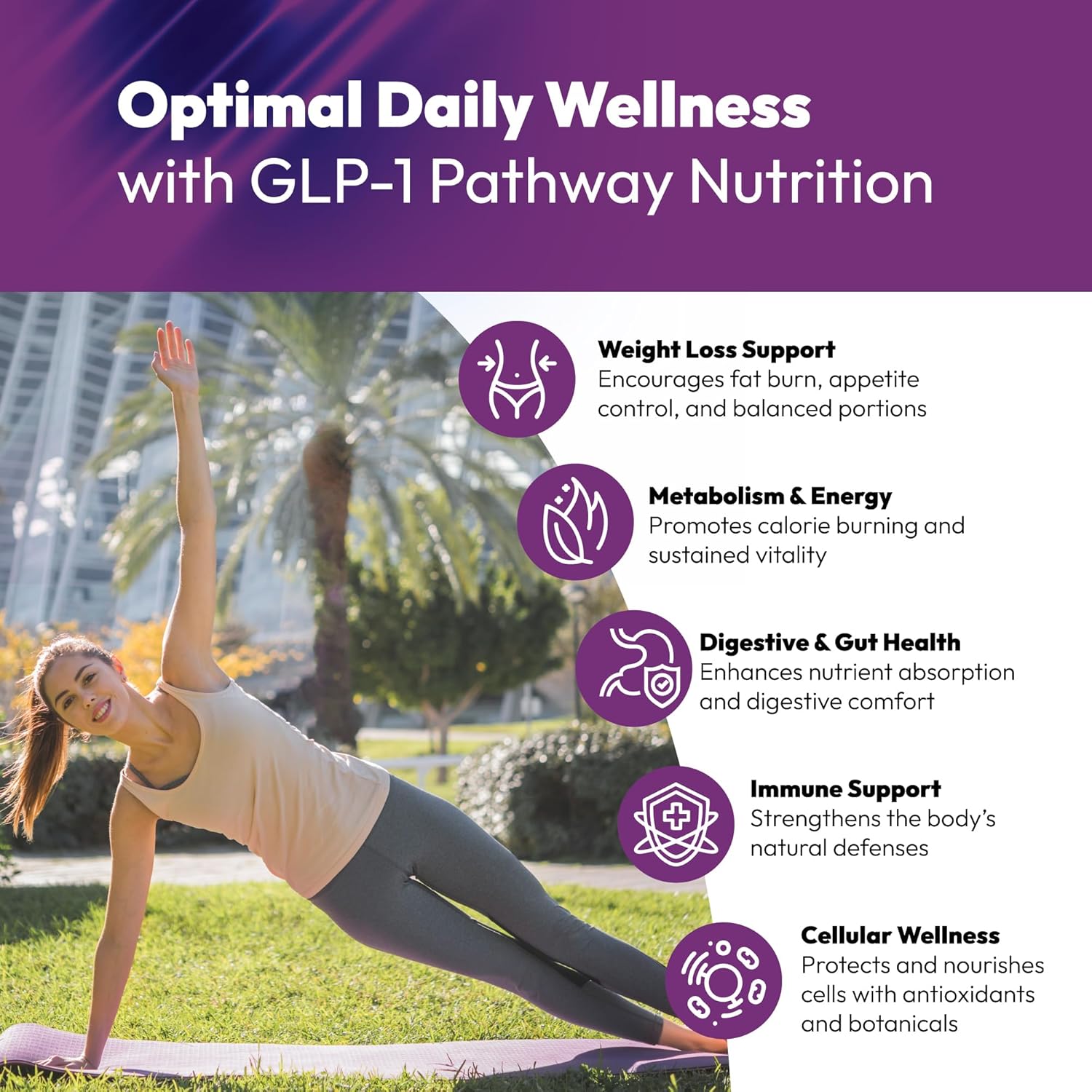 - Targeted GLP-1 Pathway Nutrition: RevionLabs 16-in-1 GLP-1 Support for Women and Men is expertly formulated to help maintain GLP-1 activity, a vital pathway for regulating appetite, craving control, hunger cues, and steady energy. Featuring Liposomal Berberine, Ceylon Cinnamon, Green Tea, and Bitter Melon, this advanced blend works in harmony with a balanced lifestyle and healthy diet to help support weight goals, metabolic function, and overall holistic wellness balance.